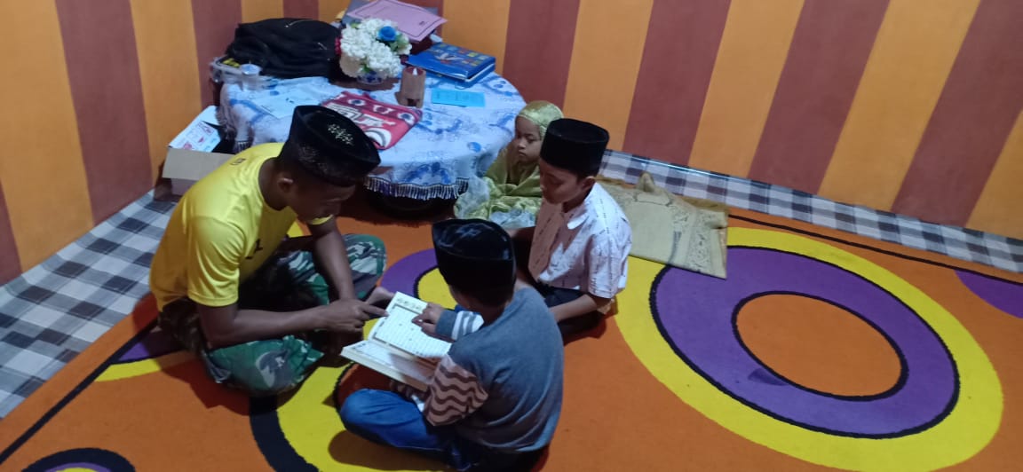 Anggota Satgas TMMD, Mengajar Ngaji Adik Asuh