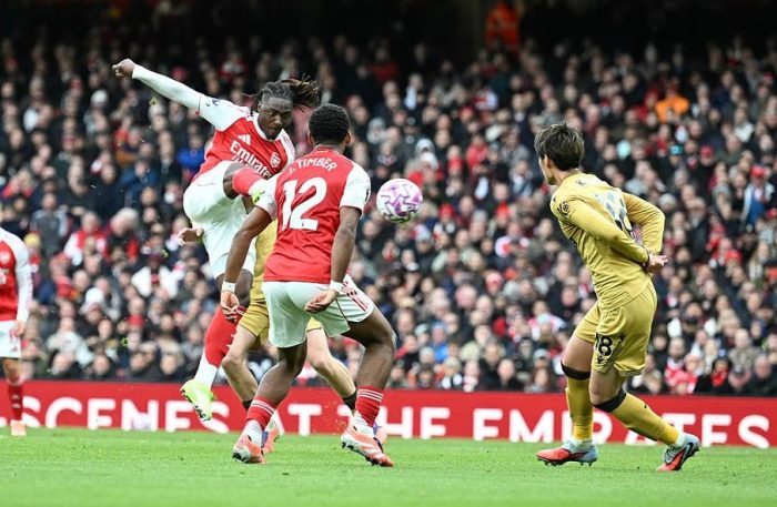 Berawal dari situasi bola mati, Declan Rice mengirimkan umpan bebas ke dalam kotak penalti. Bola sempat disundul Gabriel Magalhães, dan disambut oleh Eze dengan sepakan first-time yang tajam, menaklukkan kiper Palace.