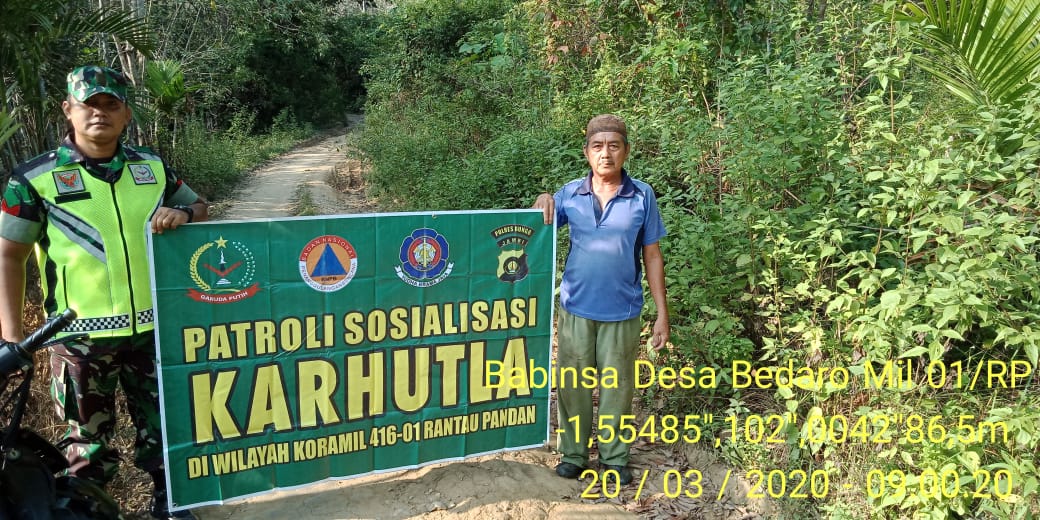 SIDAKPOST.ID, BUNGO – Setiap hari Babinsa dari Koramil 416-01/Rantau Pandan, melaksanakan pencegahan kebakaran dengan cara patroli dan. sosialiasi karhutla di walayah binaan.