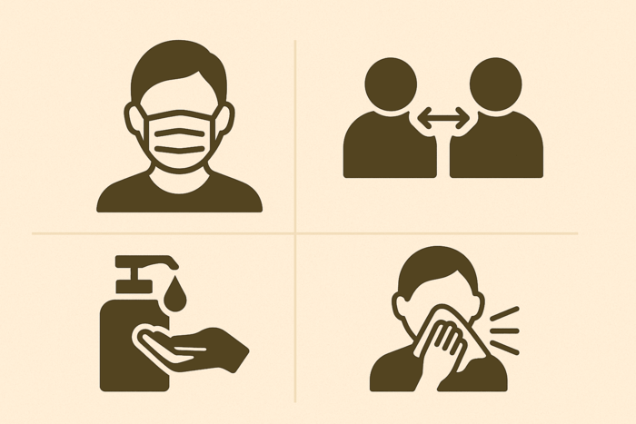 Cuci tangan secara rutin dengan sabun atau gunakan hand sanitizer. Tangan adalah media penularan utama penyakit, terutama saat menyentuh hidung, mulut, atau mata.