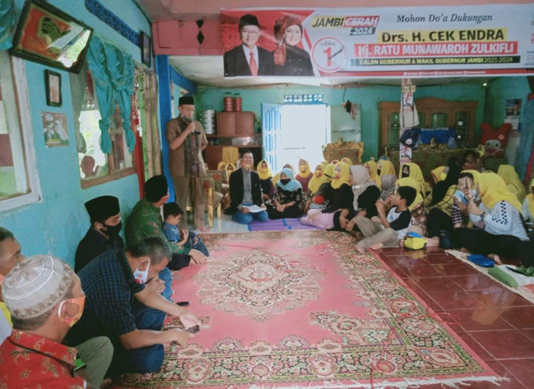 Cek Endra menambahkan, dalam kamusnya tidak ada kata lupa atau zolim kepada masyarakat yang telah membantunya. Karena itu dirinya meminta kepada masyarakat untuk membantunya duduk sebagai Gubernur Jambi.