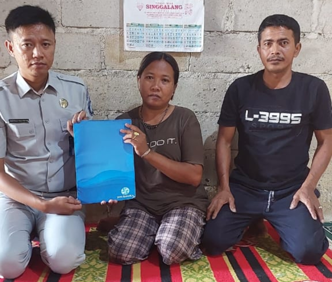 Jasa Raharja menyerahkan santunan meninggal pengendara sepeda motor Yoga Verdi Setiawan Damanik kepada ahli warisnya yang sah yakni Tanti Muji Rahayu (ibu korban) dan pembonceng sepeda motor Muhammad Hamdany kepada ahli waris yang sah yakni Imam Nawawi (ayah korban).