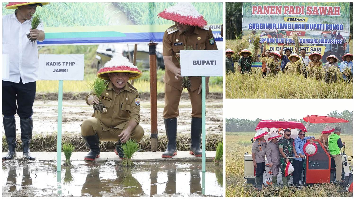 SIDAKPOST. ID, BUNGO – Gubernur Jambi Al Haris bersama Bupati Bungo Dedy Putra melakukan panen raya dan tanam padi di Dusun Bukit Sari, Kecamatan Jujuhan Ilir, Selasa (5/8/2025).