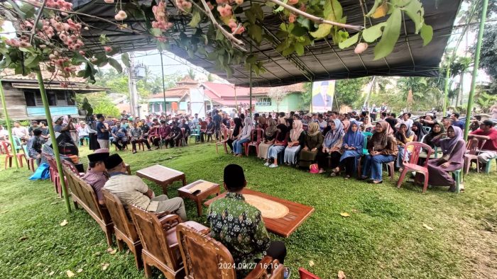 SIDAKPOST.ID, TEBO – Pasangan Calon Bupati dan Wakil Bupati Tebo Nomor Urut 2, Agus Rubyanto, SE, MM dan Nazar Efendi, SE, M.Si disambut hangat oleh masyarakat Betung Bedarah Timur dan Betung Bedarah Barat saat melakukan tatap muka dan pengukuhan Tim Pemenangan di Desa Betung Bedarah Timur, Kecamatan Tebo Ilir