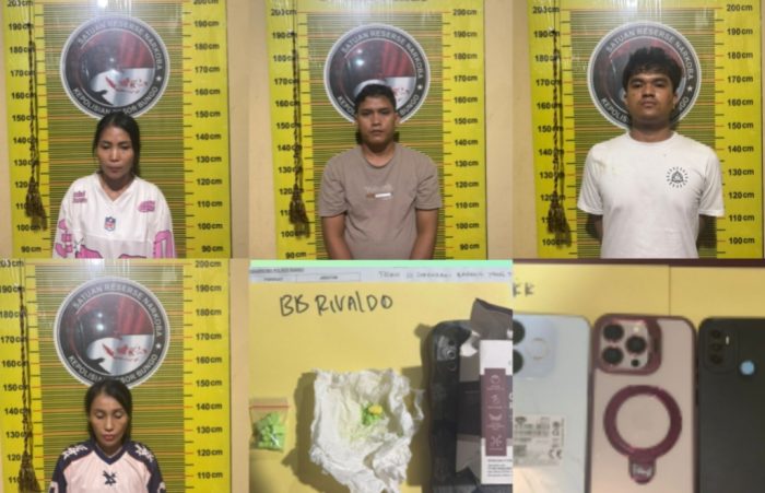 BANDAR EKSTASI : Dua Wanita dan dua Pria Ditangkap Polisi di rumah kos wilayah kabupaten Bungo. Foto : Humas Polres