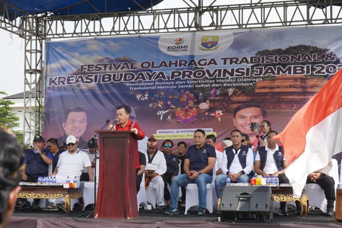 Hal tersebut disampaikannya saat Pembukaan Festival Olahraga Masyarakat Tradisional dan Kreasi Budaya Komite Olahraga Masyarakat Indonesia (KORMI) Provinsi Jambi Tahun 2025, bertempat di Lapangan Kantor Gubernur Jambi, Minggu (16/11/2025) pagi.