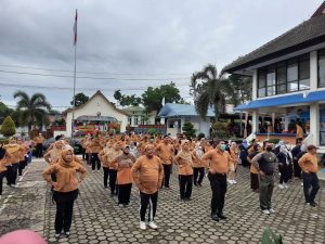 Tampak Peserta OPD-KB dalam 11 kabupaten/kota di Jambi Ikuti senam kebugaran dalam Harganas Ke-29 Tahun 2022 di kantor BKKBN Jambi. Foto : ,zakaria