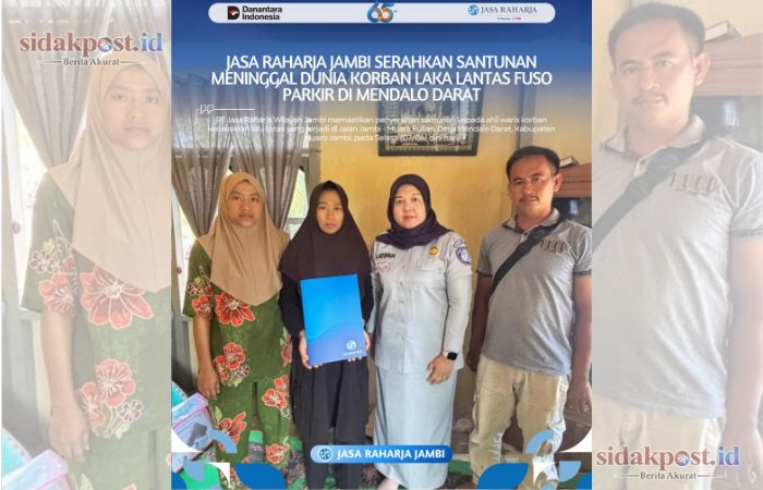 SIDAKPOST.ID, MUARO JAMBI – PT Jasa Raharja Wilayah Jambi memastikan penyerahan santunan kepada ahli waris korban kecelakaan lalu lintas yang terjadi di Jalan Jambi – Muara Bulian, Desa Mendalo Darat, Kabupaten Muaro Jambi, pada Selasa (07/04) dini hari.