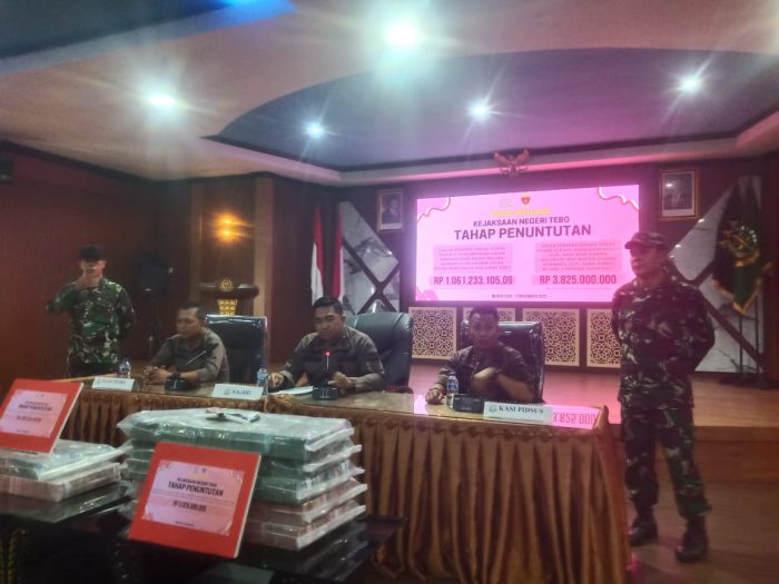 SIDAKPOST.ID, TEBO – Kejaksaan Negeri (Kejari) Tebo gelar konferensi pers terkait perkara korupsi pembangunan pasar dan KUR di BSI, di Aula utama Kejari, Kami (13/11/2025).