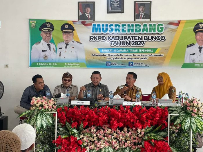 SIDAKPOST.ID, BUNGO – Pelaksanaan Musyawarah Perencanaan Pembangunan (Musrenbang) tingkat Kecamatan Tanah Sepenggal menuai sorotan tajam. Pasalnya, forum krusial untuk menentukan arah pembangunan daerah tersebut hanya dihadiri oleh dua orang anggota DPRD dari Daerah Pemilihan (Dapil) 5, Selasa (10/2/2026).