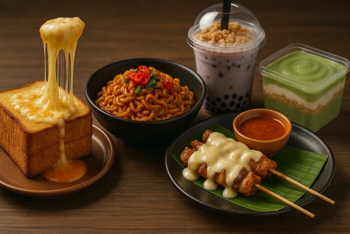 Roti bakar kembali naik daun, kali ini dengan sentuhan topping mewah seperti keju mozzarella meleleh, saus salted egg, hingga es krim homemade. Teksturnya yang renyah di luar namun lembut di dalam membuat kuliner ini cocok untuk camilan malam maupun sarapan manis.