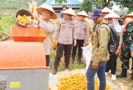 Kapolres Tebo dalam sambutannya menyebutkan, bahwa kegiatan Panen Jagung ini merupakan bentuk nyata dukungan Polri terhadap program Pemerintah di bidang ketahanan pangan nasional.