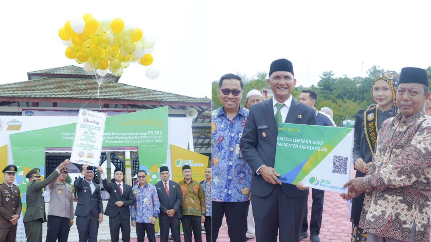 SIDAKPOST.ID, SAROLANGUN – Bupati Sarolangun H. Hurmin, SE didampingi Kepala Kantor Wilayah BPJS Ketenagakerjaan Sumatera Bagian Selatan (Sumbagsel) Muhyidin secara resmi melakukan Launching Perlindungan Jaminan Sosial Ketenagakerjaan bagi 55.703 pekerja di Kabupaten Sarolangun, Selasa (28/10/2025).