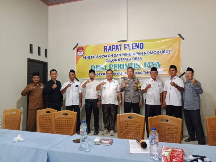 SIDAKPOST.ID, TEBO – Tahapan Pemilihan Kepala Desa (Pilkades) serentak tahun 2026 di Kabupaten Tebo terus bergulir. Rabu (8/4/2026), Desa Perintis Jaya, Kecamatan Rimbo Bujang, menggelar rapat pleno penetapan calon sekaligus pencabutan nomor urut Calon Kepala Desa (Cakades) yang berlangsung tertib dan lancar.