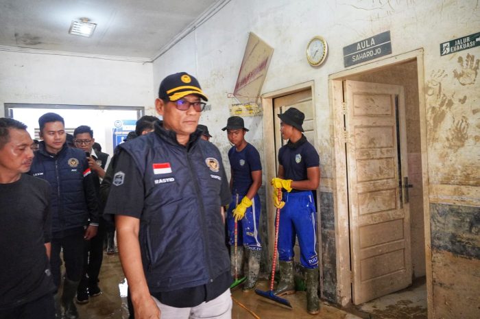 Petugas dan pejabat meninjau serta membersihkan fasilitas terdampak banjir di Aceh Tamiang sebagai bagian dari percepatan penanggulangan bencana di bawah arahan Prabowo Subianto. Foto: Rasyid