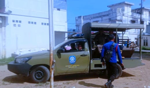Tak membuang waktu lagi, anggota Damkar dan Penyelamatan langsung meluncur menuju ke lokasi sasaran dengan mengendarai mobil patroli Satpol PP.