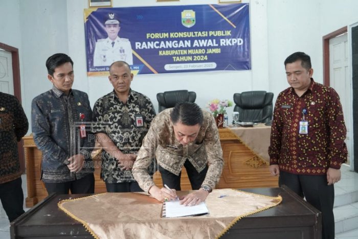 SIDAKPOST.ID. MUARO JAMBI – Pj Bupati Bachyuni Deliansyah membuka Forum Konsultasi publik rencana awal RKPD 2024 kabupaten Muaro jambi di ruang pola kantor Bappeda, Kamis (23/02/2023).