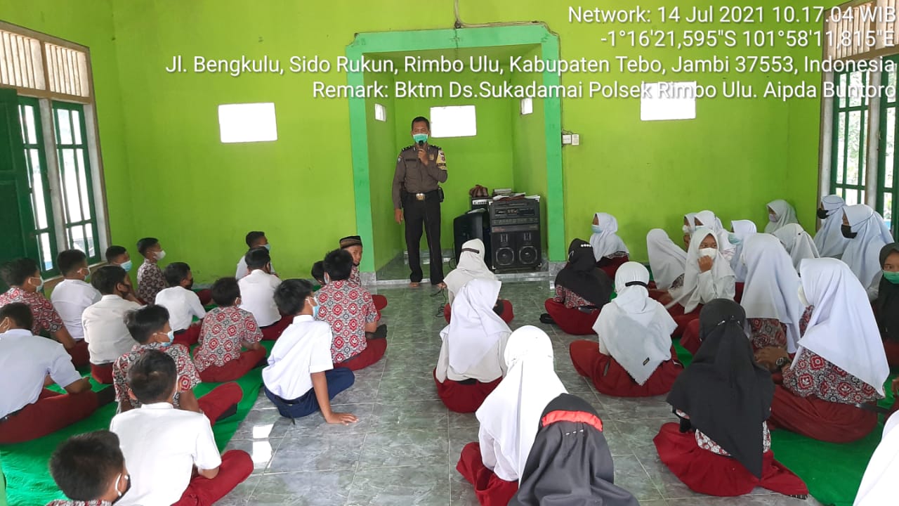 SIDAKPOST.ID, TEBO – Aipda Buntoro Bhabinkamtibmas Polsek Rimbo Ulu Polres Tebo memberikan sosialisasi bertajuk ” Implimentasikan Keluarga Sadar Hukum dan menerapkan Protokol Kesehatan ” kepada siswa, yang sedang Masa Pengenalan Lingkungan Sekolah (MPLS). Bertempat di SMPN 21Tebo Desa Sidorukun, Kecamatan Rimbo Ulu Kabupaten Tebo, kemarin.