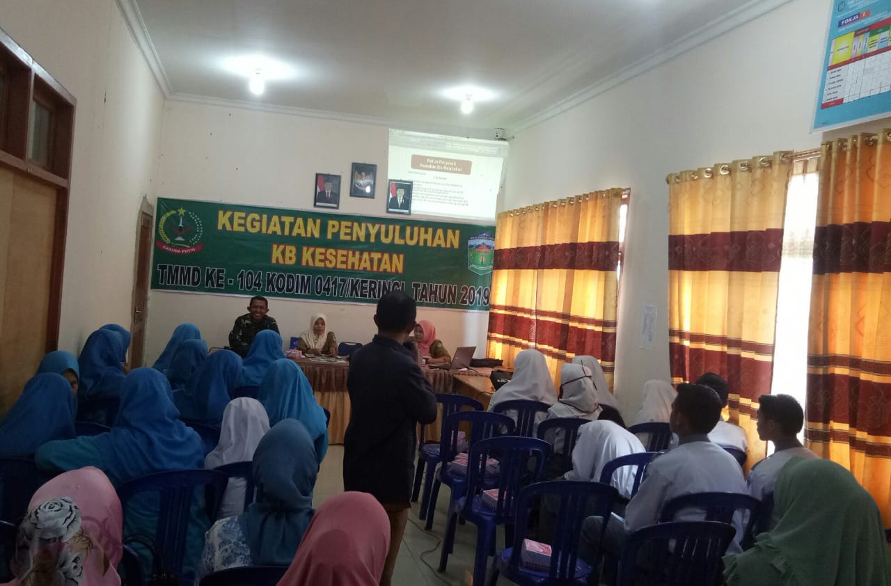 Pasiter Kodim 0417 Kerinci Kapten Inf Nasrul mengatakan jika kegiatan penyuluhan KB Kesehatan ini merupakan sasaran non fisik dalam rangka TMMD ke 104.