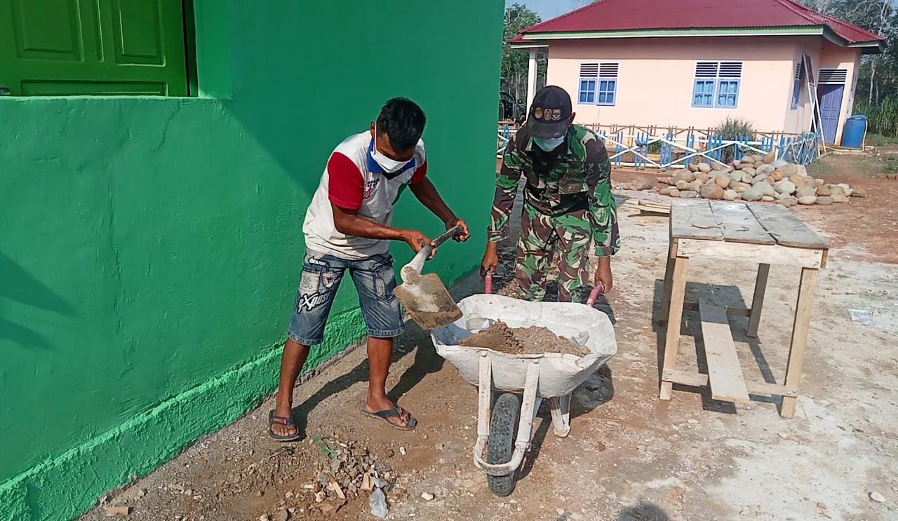 Keduanya merasa perlu melakukan penbersihan puing sisa-sisa bangunan agar terlihat bersih dan rapi. Satgas TMMD 111 dan Warga Desa Bukit Beringin, satu tujuan untuk mensukseskannya. (Sp)