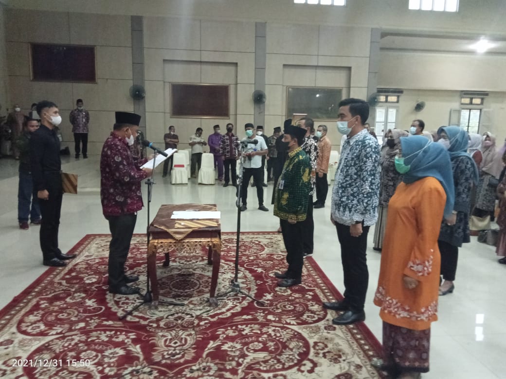 SIDAKPOST.ID.MUARO JAMBI – Sekda kabupaten Muaro Jambi, Budhi Hartono melantik sekaligus pengambilan sumpah jabatan administrator, pengawas dan fungsional di lingkungan Pemerintah Kabupaten Muaro Jambi, bertempat di gedung Serbaguna Komplek Perkantoran, Jum’at (31/12/2021).