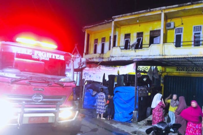 SIDAKPOST.ID, TEBO – Musibah kebakaran melanda Pasar Muara Tebo, Kecamatan Tebo Tengah, Kabupaten Tebo. Satu unit ruko berukuran 4×8 meter milik warga bernama Imanudin ludes dilalap api pada Selasa (13/01/2025) malam, sekitar pukul 22.13 WIB.