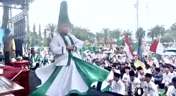 Bertajuk “Mengawal Indonesia Merdeka, Menuju Peradaban Dunia” para Santri menampilkan tarian Sufi yang memukau para pengunjung, penari tampak tampil mengenakan Sikey atau penutup kepala yang memanjang ke atas.