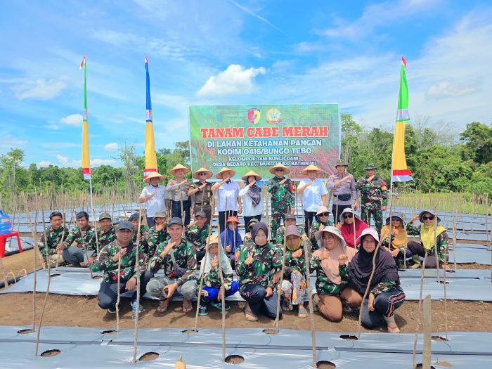 Penanaman cabai merah dipimpin langsung oleh Dandim Letkol INF Dedy Pungky Irawanto bersama kelompok tani Bungo Dani, bertempat di dusun Bedaro, kecamatan Muko-Muko Bathin VII,l kabupaten Bungo, Rabu (8/10/2025).