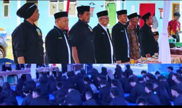 Pengurus PCNU Tebo dan jajaran Pagar Nusa berdiri di podium kehormatan saat penutupan Kejuaraan PS Pagar Nusa Trisula Cup 2026 di Pondok Pesantren Modern Cendikia Qurani, Kecamatan Tebo Tengah. Foto: Amir
