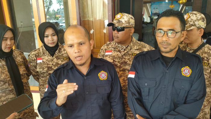 Ketua Karang Taruna Kab. Bungo Muhammad Rajiv didampingi Sekretaris Karang Taruna dan anggota Satgas saat diwawancari awak media. Foto : Sari