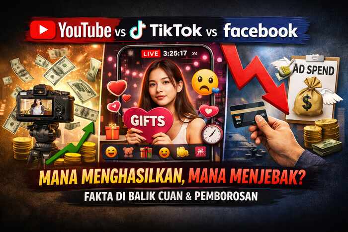 Di era digital saat ini, tiga platform besar: YouTube, TikTok, dan Facebook menjadi ladang utama mencari penghasilan. Namun, tidak semua strategi di platform ini berujung cuan. Bahkan, ada yang justru membuat waktu dan energi terbuang sia-sia.